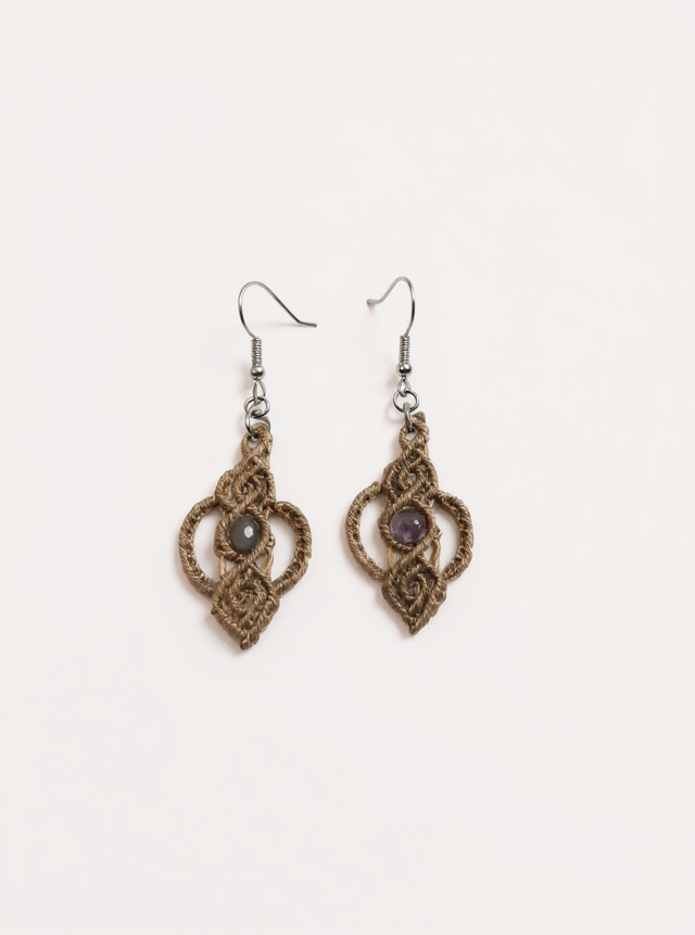 Boucles d’oreille losange en micro-macramé