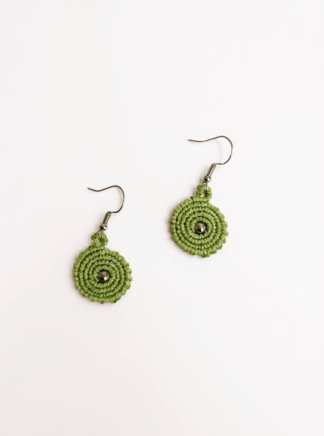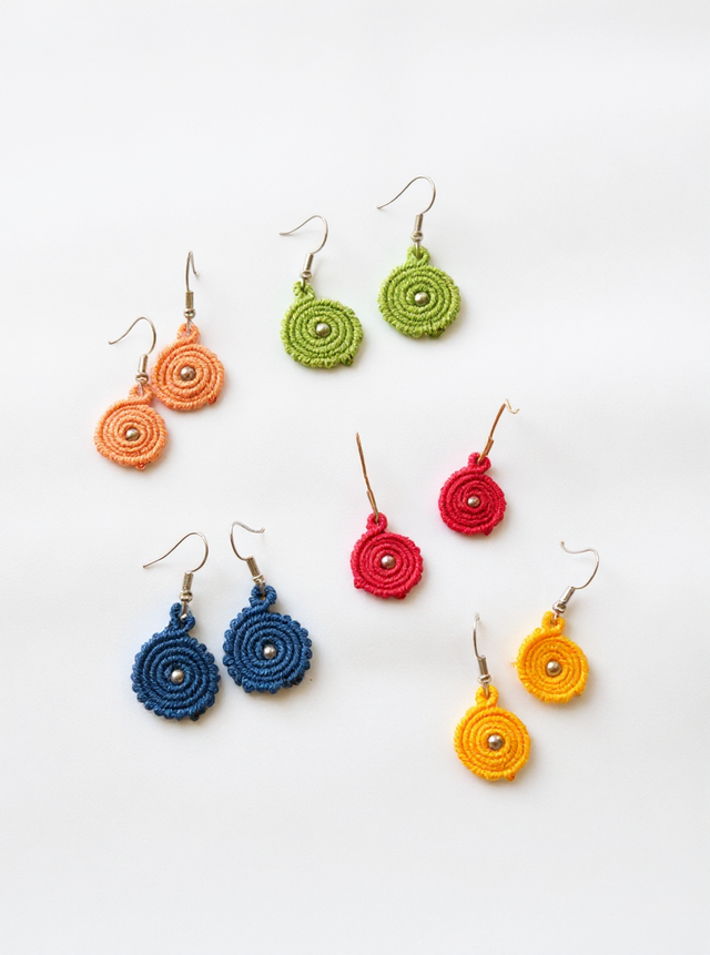 Boucles d’oreille spirales rondes en micro-macramé