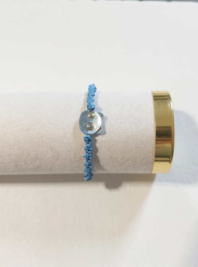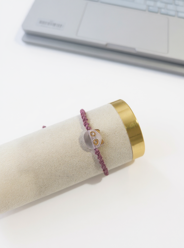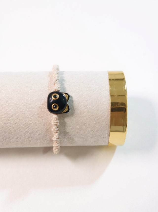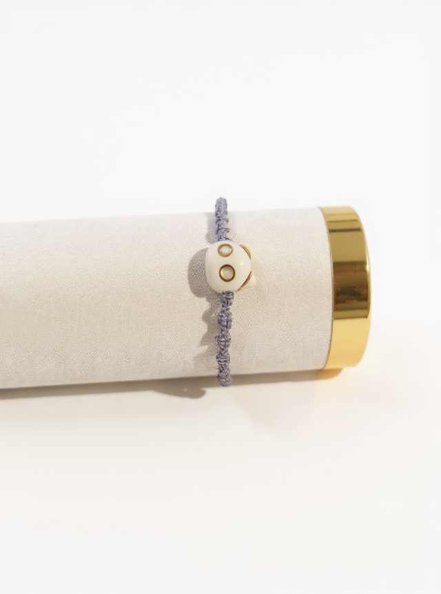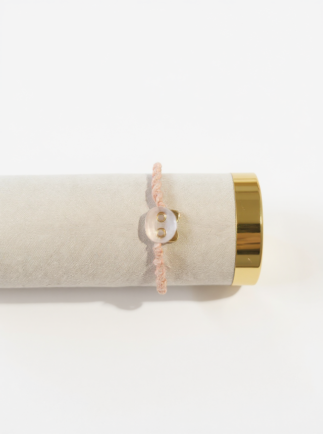 Grâce à son coulissant en macramé, le bracelet s’ajuste facilement et s’adapte à tous les poignets, garantissant un port confortable et sécurisé.