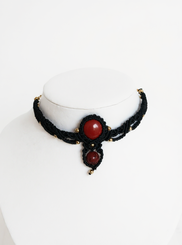 Chaque nœud est soigneusement réalisé pour mettre en valeur la chaleur profonde du Jaspe rouge, pierre d’ancrage et de vitalité.