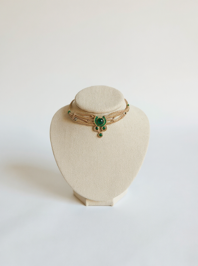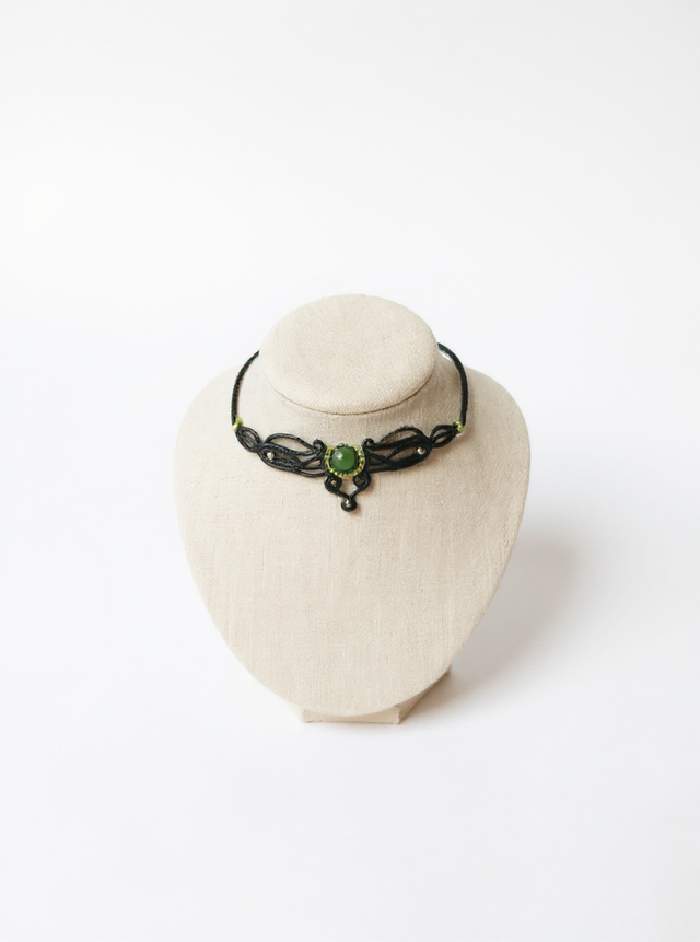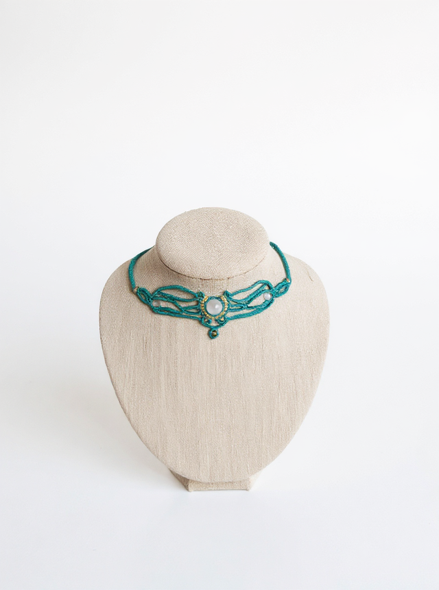 Alliez authenticité et élégance bohème avec le collier ras du cou Hilando Macramé, entièrement tissé à la main selon la technique du micro-macramé.
