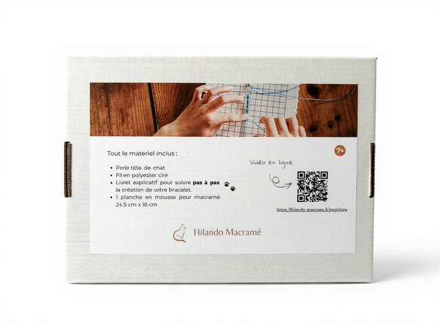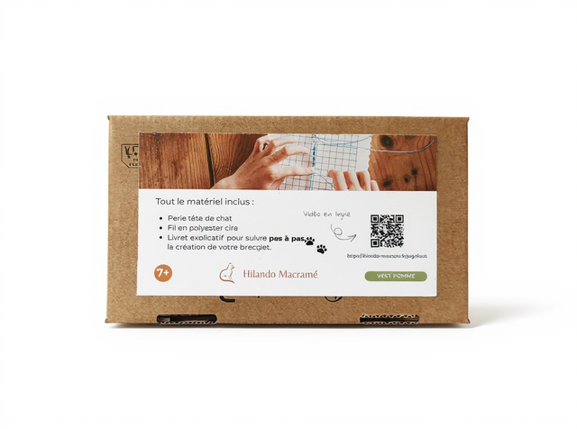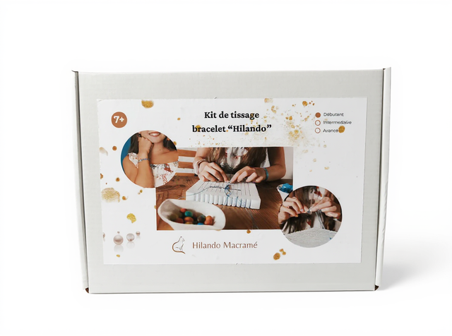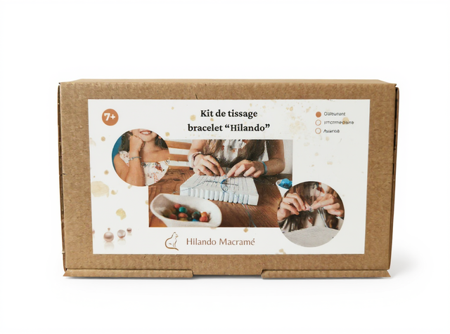 Le kit contient tout le nécessaire pour réussir le tissage, sans matériel supplémentaire : les fils sont déjà pré-coupés, la perle est fournie, et l’apprentissage est facilité grâce à un livret illustré étape par étape ainsi qu’à une vidéo explicative accessible en ligne.