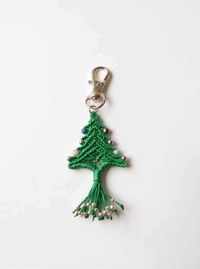 Chaque sapin est tissé à la main en micro-macramé, avec soin et précision. Certains modèles sont ornés de perles en acier inoxydable pour un éclat moderne, tandis qu’un modèle se distingue avec des perles naturelles pour une finition plus authentique. Disponibles en quatre versions, ces portes-clés uniques reflètent mon univers bohème et mes inspirations colombiennes. Parfaits pour embellir vos clés ou offrir un petit cadeau artisanal rempli de charme.